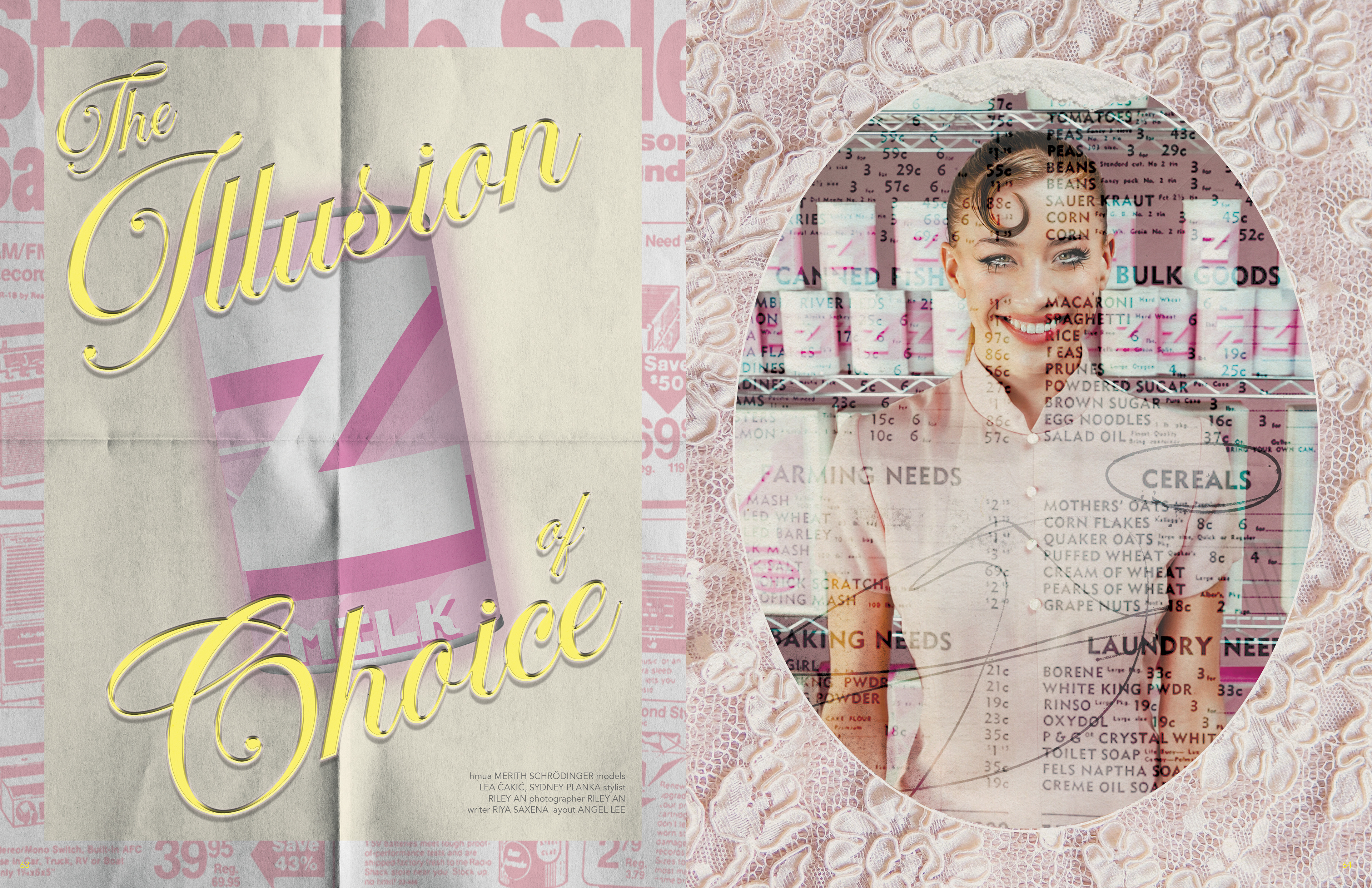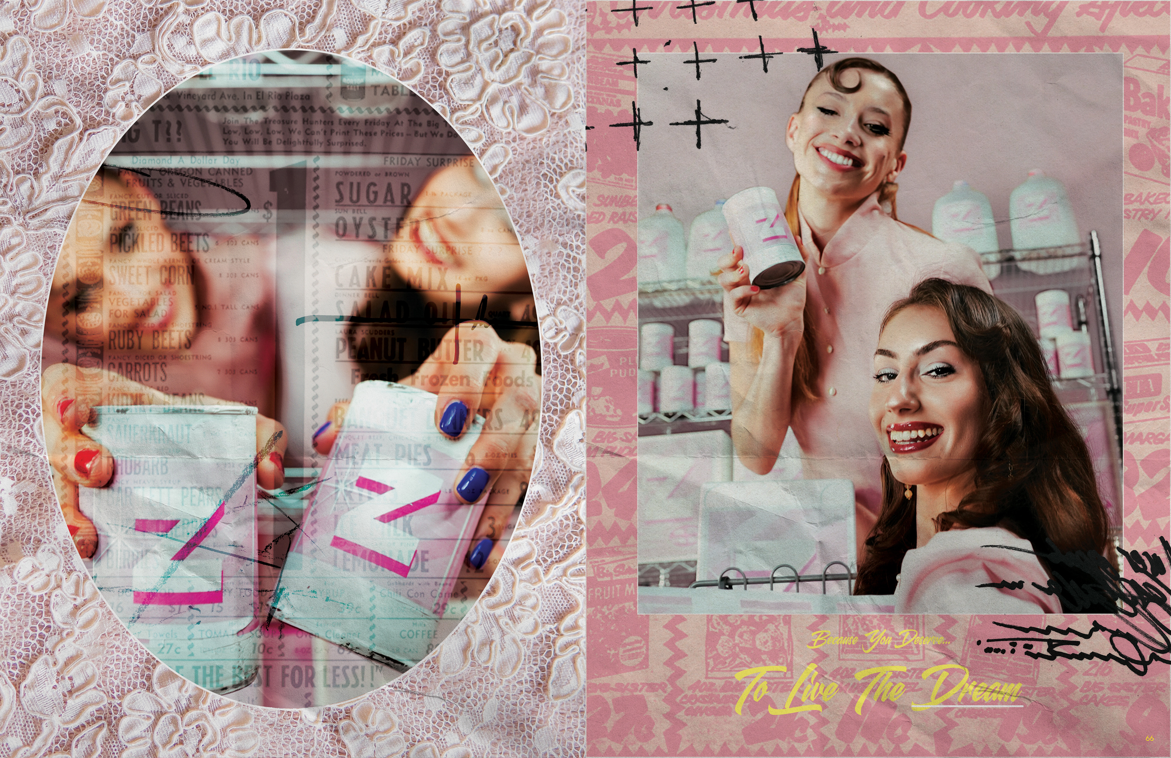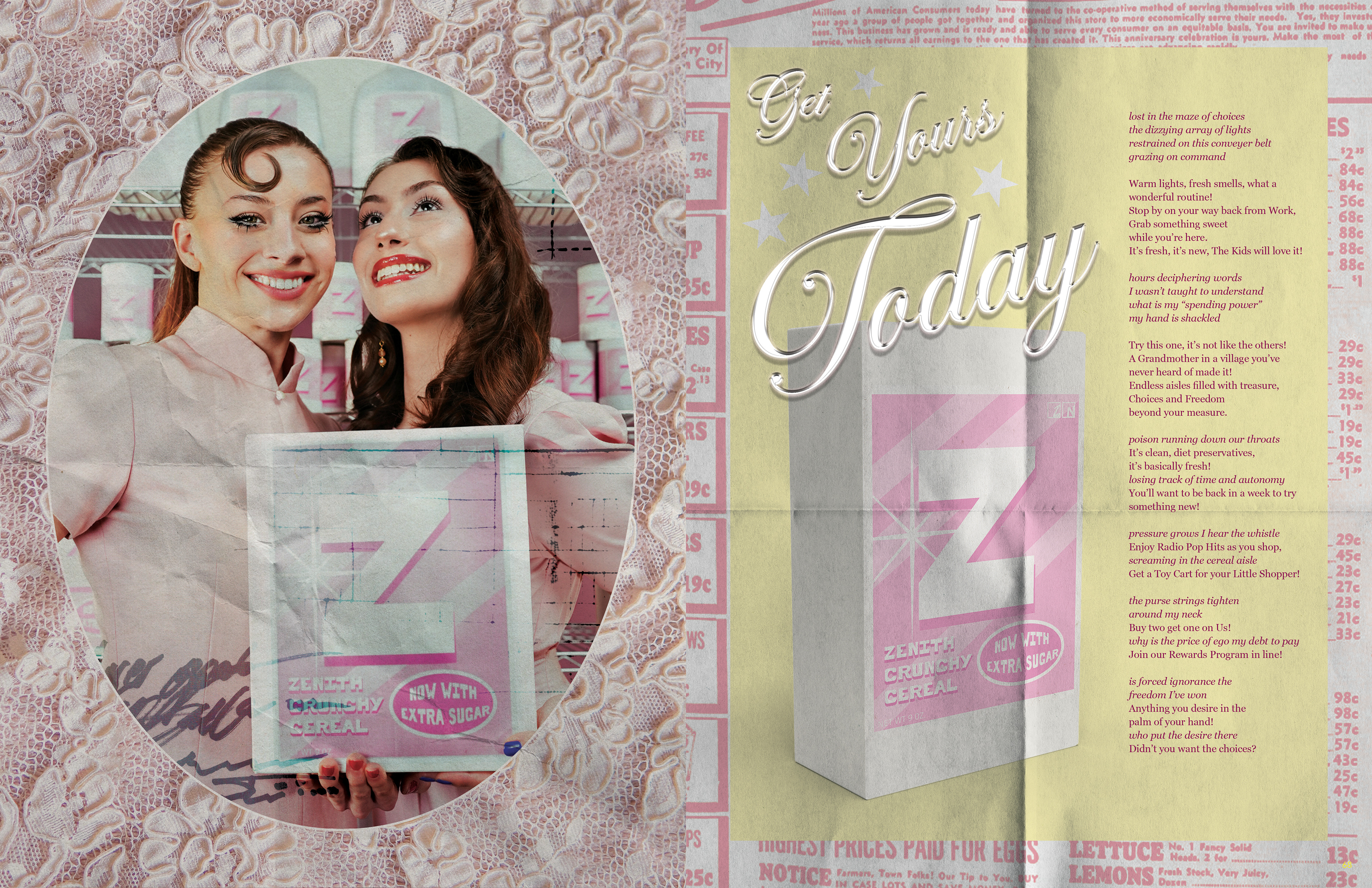 portrayed through nostalgic collages and vintage grocery advertisements.